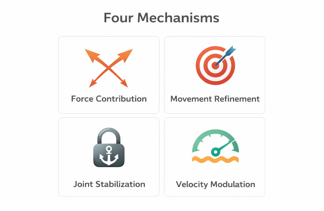 - Joint stabilization: Securing proximal joints so distal segments can move efficiently